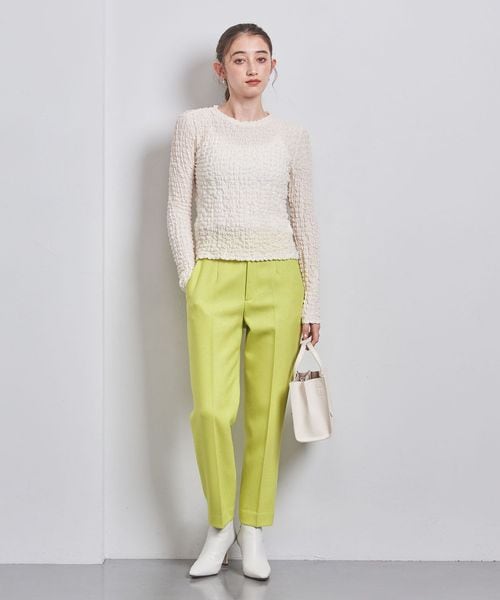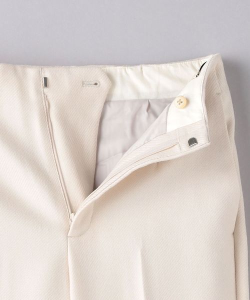 ややハイウエスト設定のベルトレスタイプで、スタイルアップして見えるウエストデザインです。