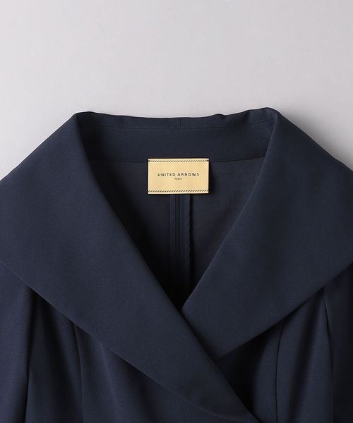 幅広のショールカラーはバックスタイルのポイントにもなるジャケット。