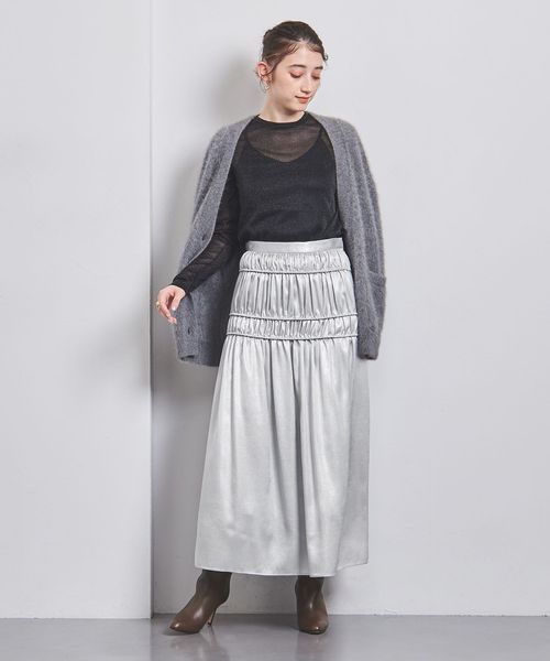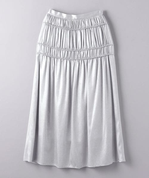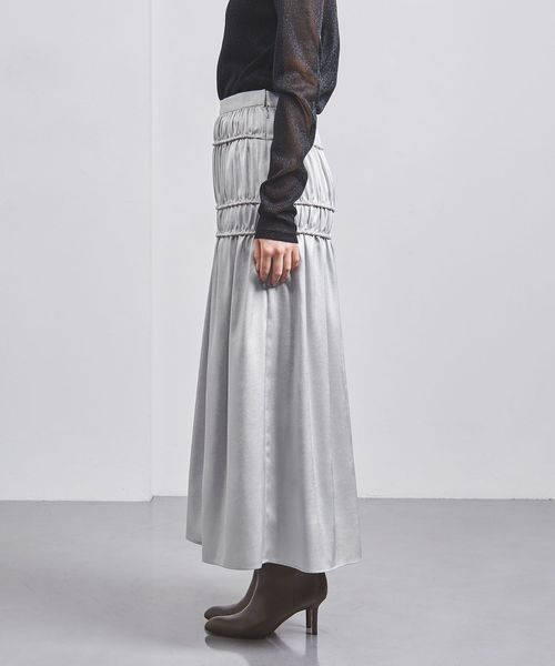 歩くたびに揺れるシルエットがエレガントなラメ入りサテンスカート