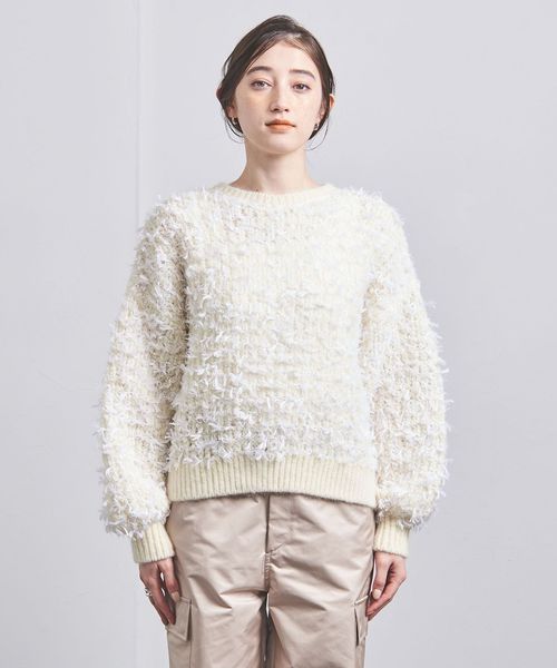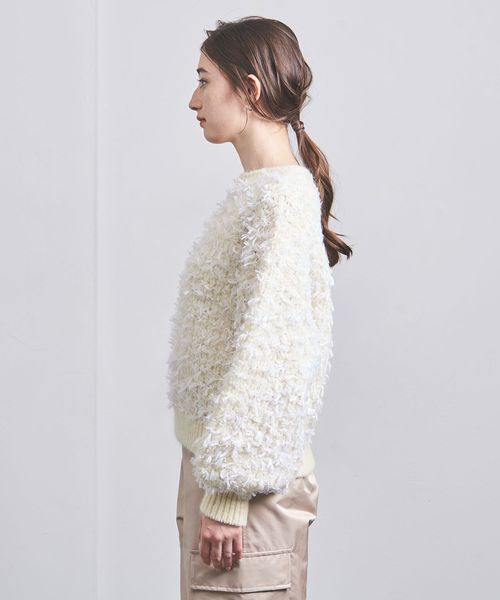 ふんわりとしたファンシー糸の素材感と、丸みを帯びたシルエットが優しい印象です。