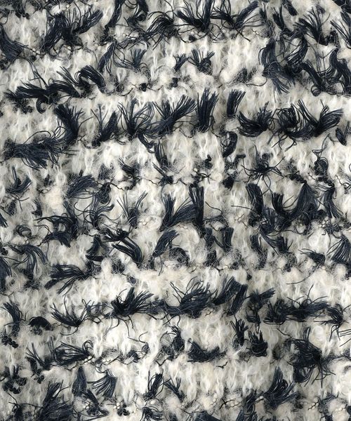 太番手と細番手のモヘヤ、毛足の長いファンシー糸など合わせた立体感、ふわふわした表面感が特徴。