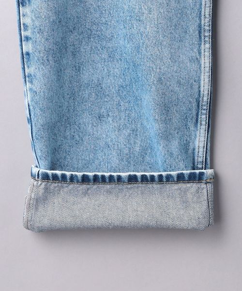 ストーンウォッシュの色合いのルーズフィットのデニムパンツ。