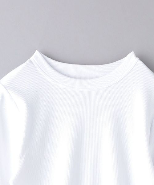 リブ編みでほどよく身体にフィットし、インナーとして着まわしやすいクルーネックデザイン。