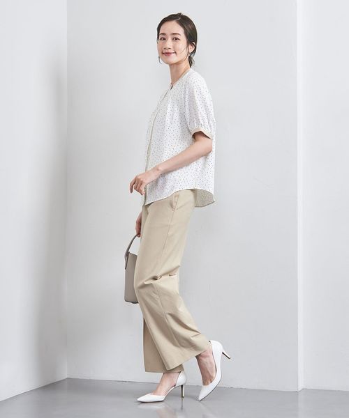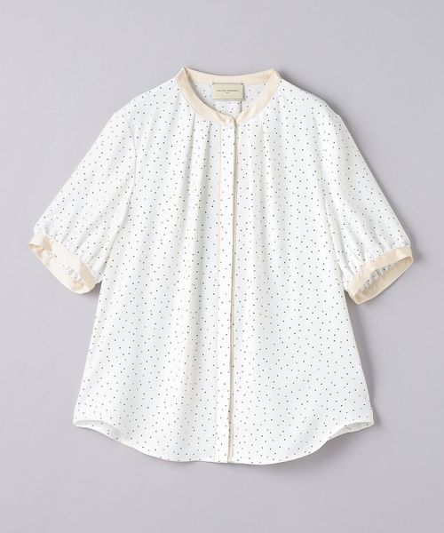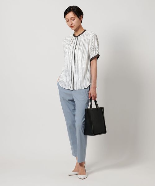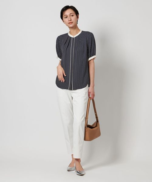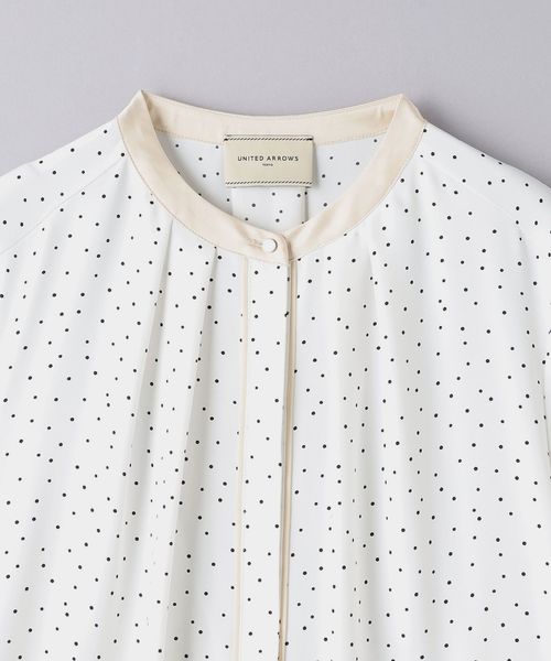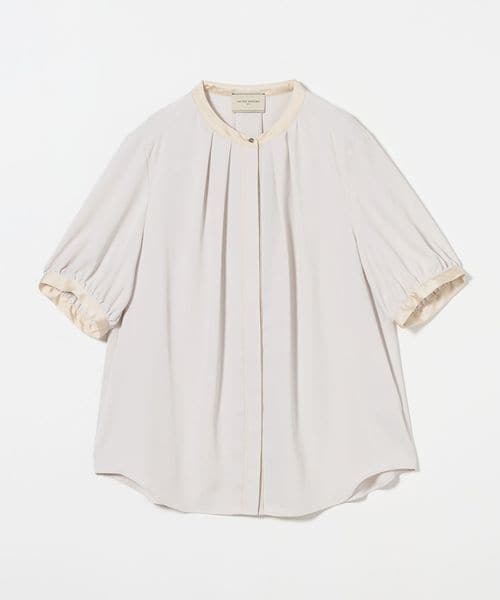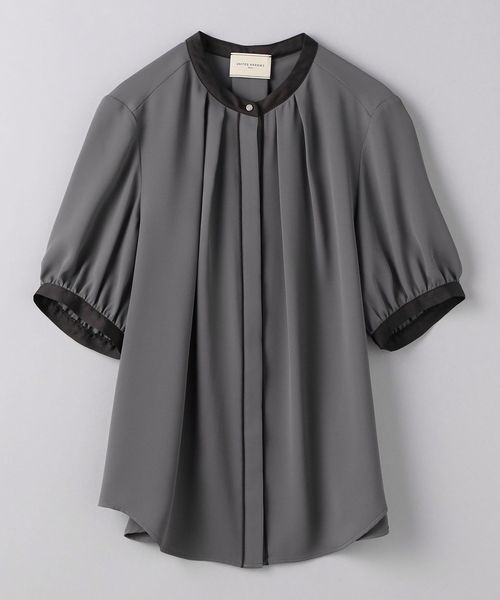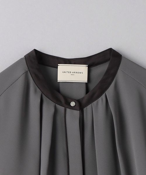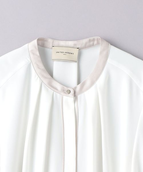 ネック回りにはタックを施し、シルエットに立体感を持たせつつ、ボタンが隠れる比翼仕様ですっきりと仕上げています。