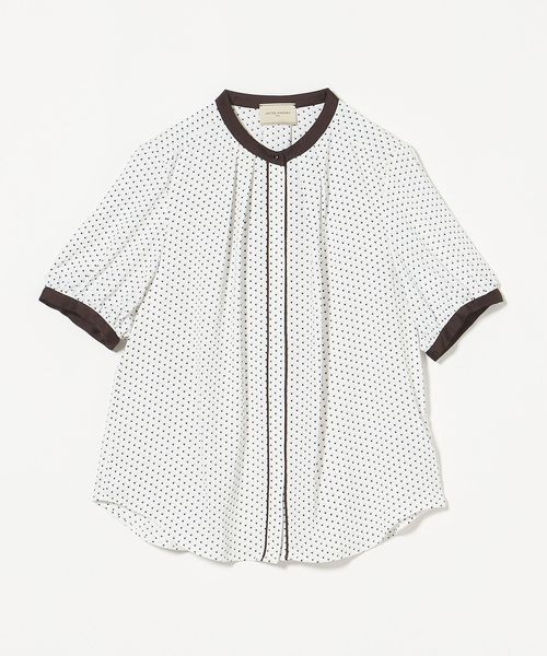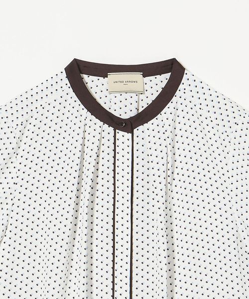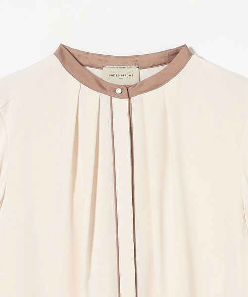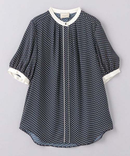 襟と袖口を配色で切り替えて、前立てにパイピングをあしらったブラウス。