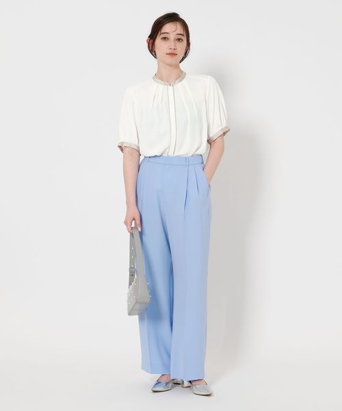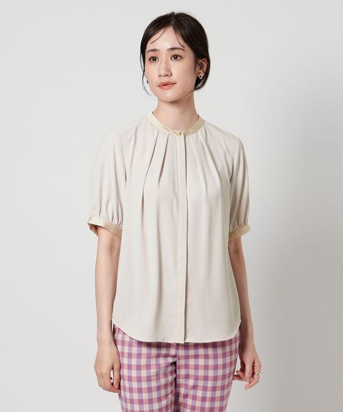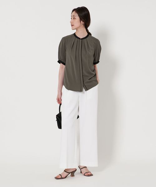 バイカラーパイピング ショートスリーブ ブラウス