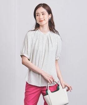 ネック回りにはタックを施し、シルエットに立体感を持たせつつ、ボタンが隠れる比翼仕様ですっきりと仕上げています。