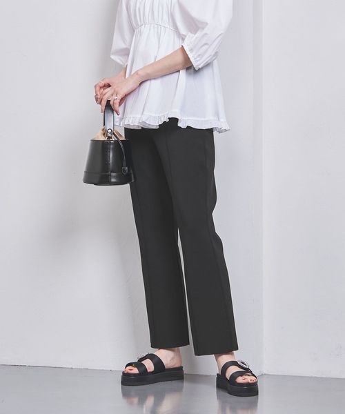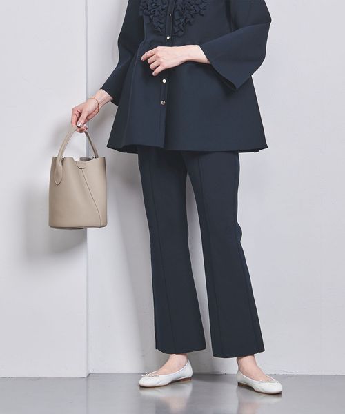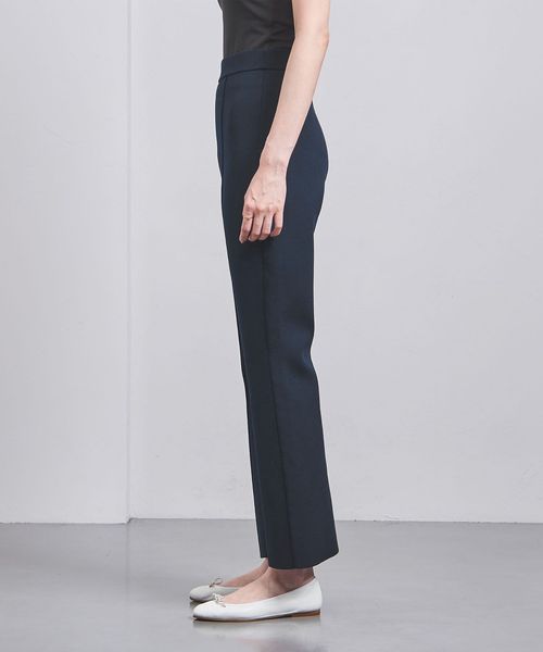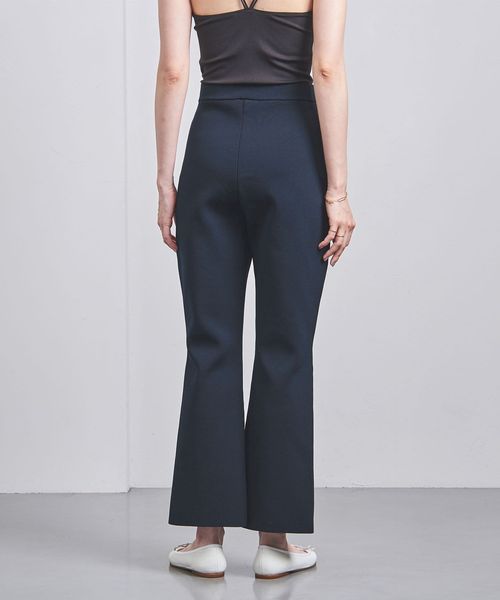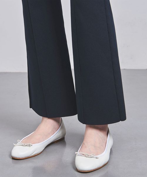 ヒップから膝あたりまでは程よくフィットするライン、膝下からフレアシルエットになるクロップド丈のパンツ。