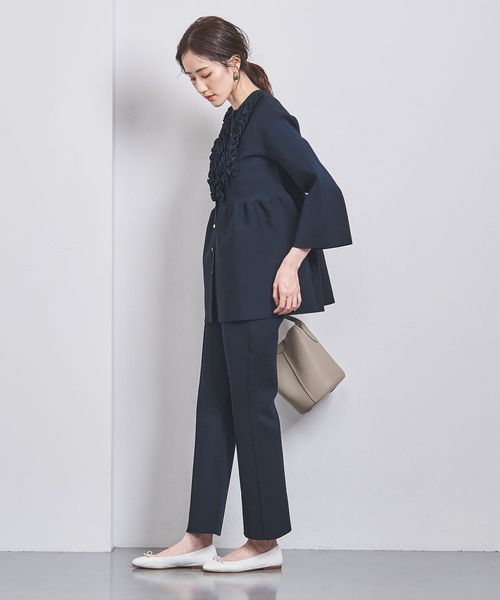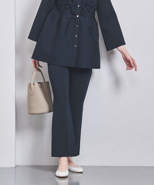 さりげないフレアシルエットが大人な雰囲気を演出するニットパンツ