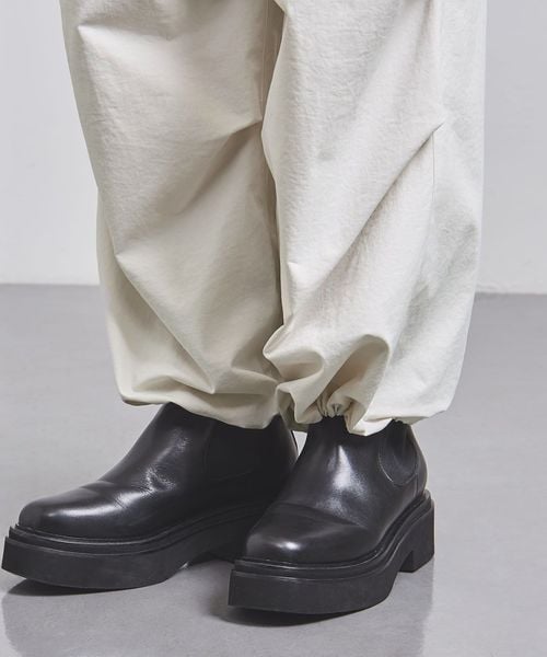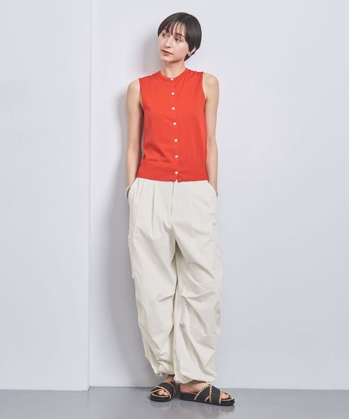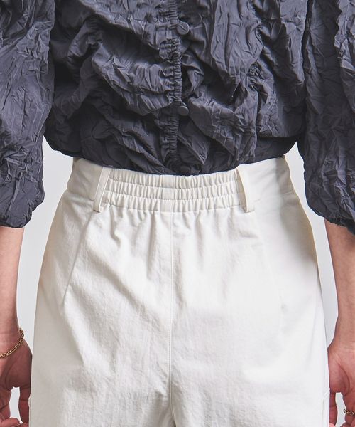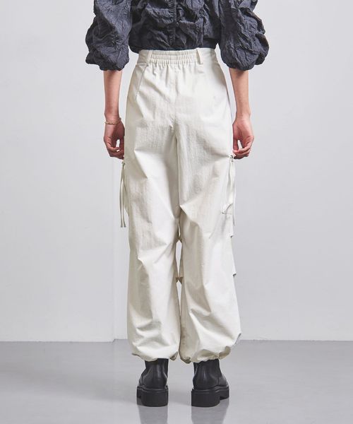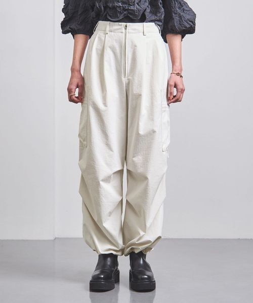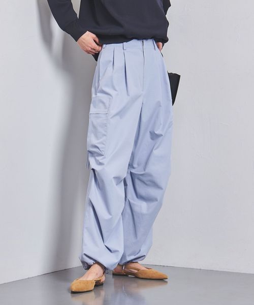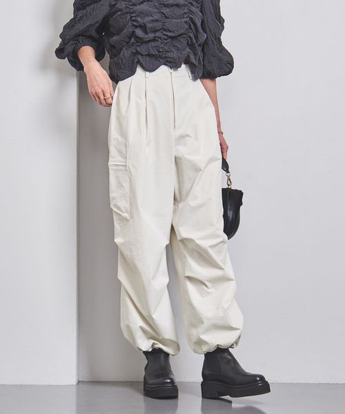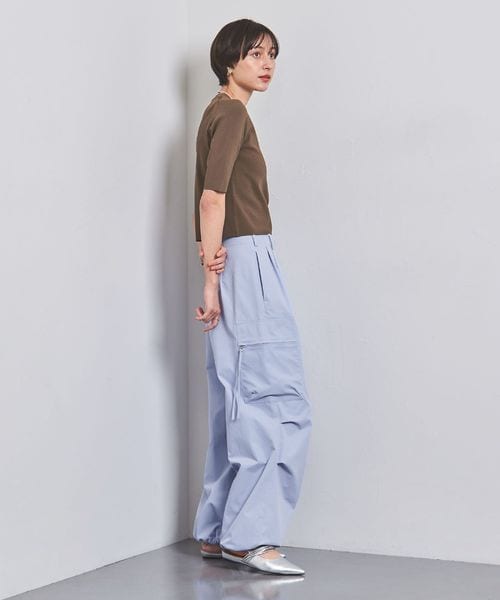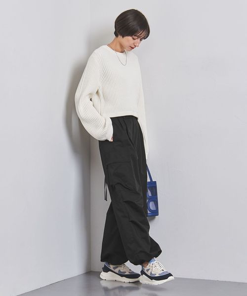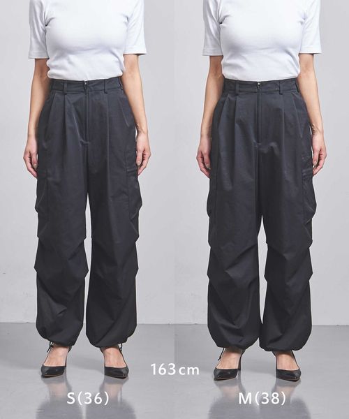 ほどよく太めのラインと、コードを絞ってシルエットを変化させられる裾で、トップスとのバランスが取りやすい一本。