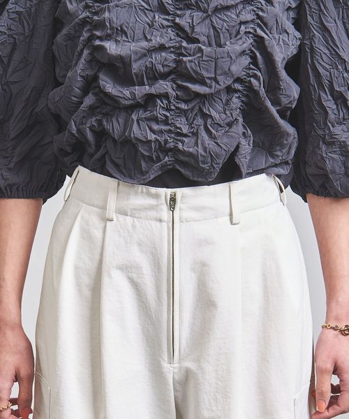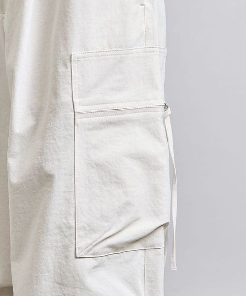 フロントとポケットにメタルジップを配したカーゴパンツ。