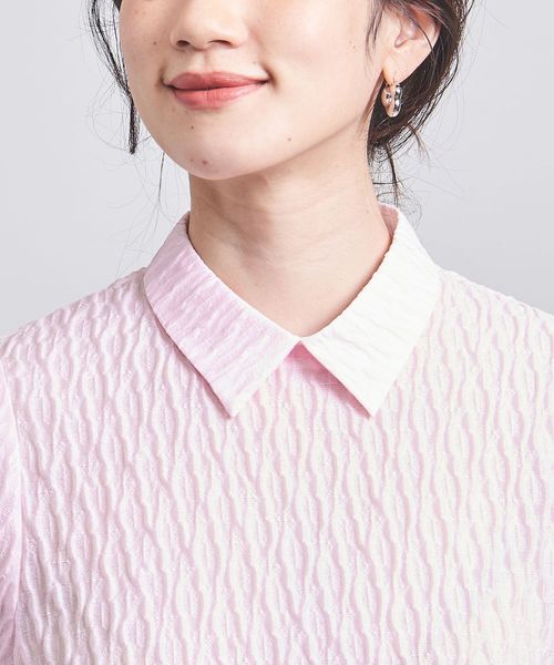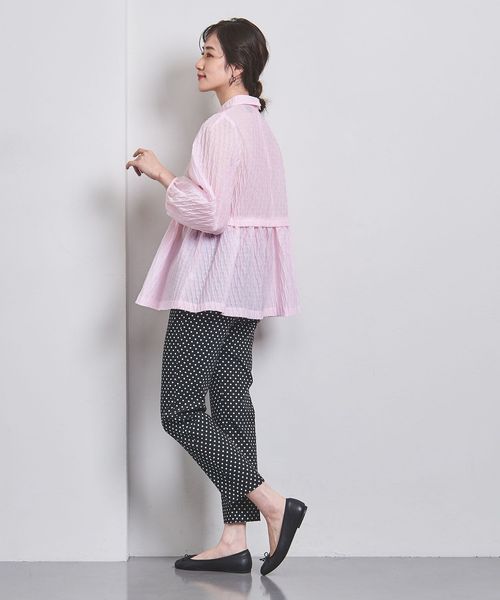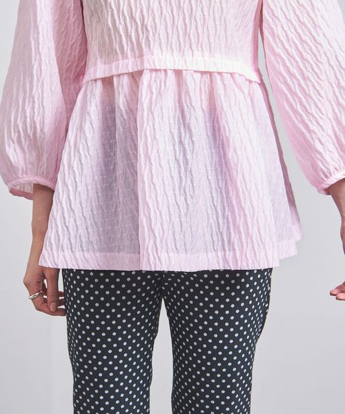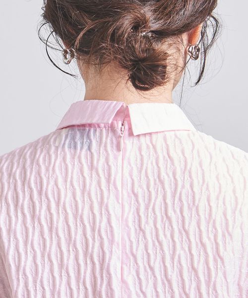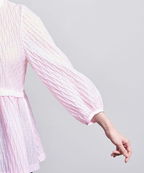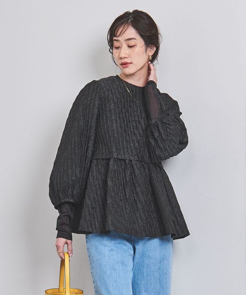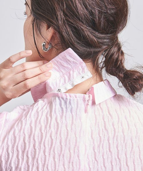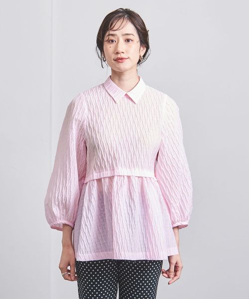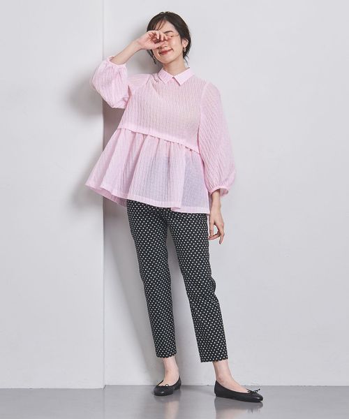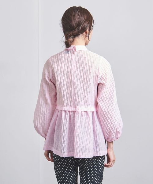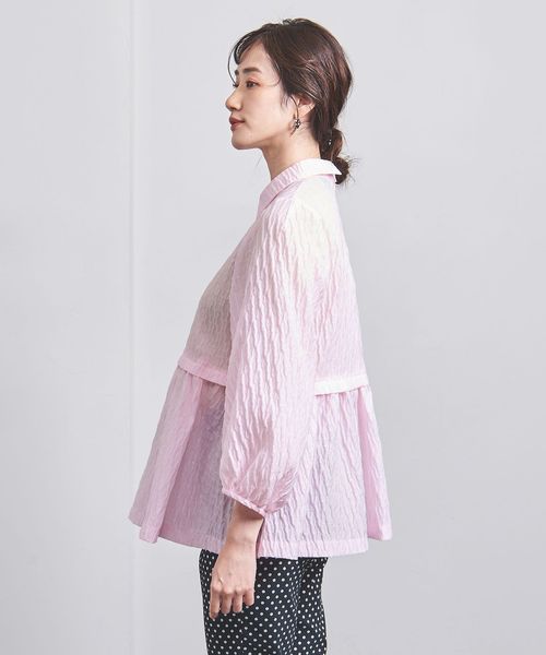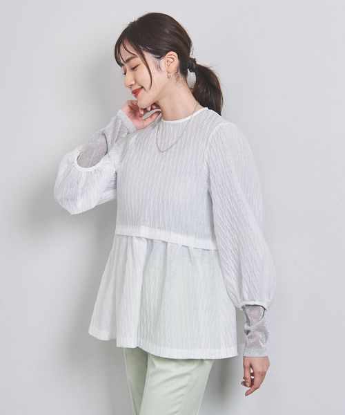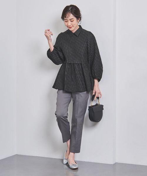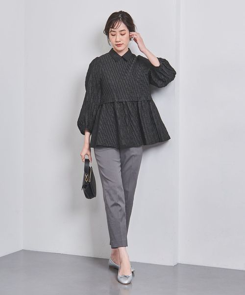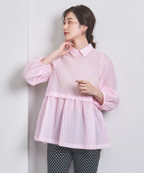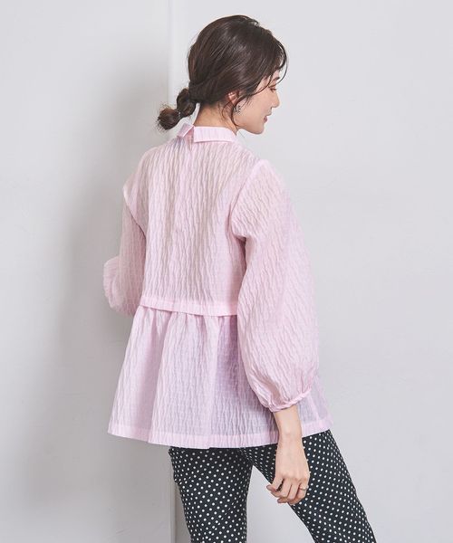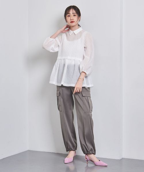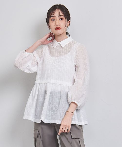 エアリーな素材を引き立てるペプラムシルエットのブラウスは、シーンやコーディネートに合わせて取り外し可能な襟がポイント。