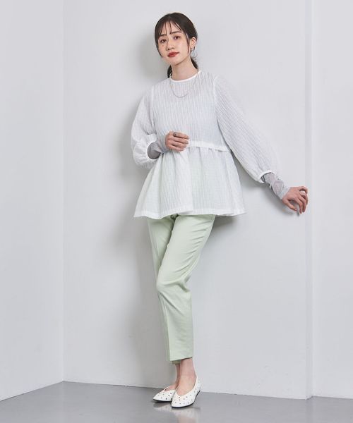 上品な透け感や手首が覗くやや短めの袖丈も相まり軽やかな印象の一枚です。