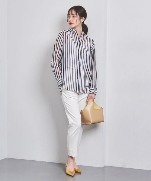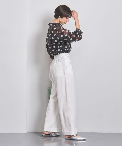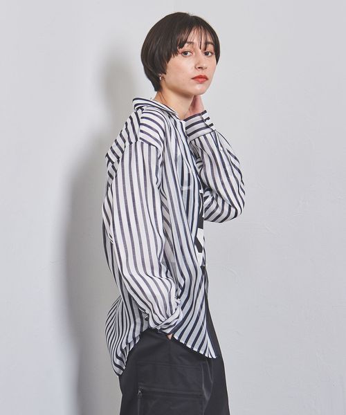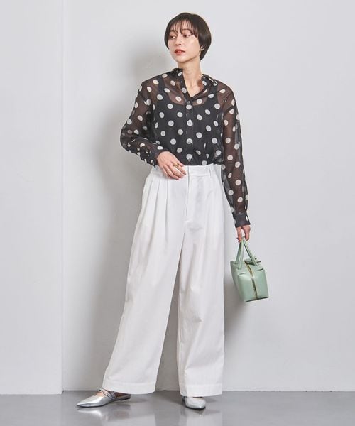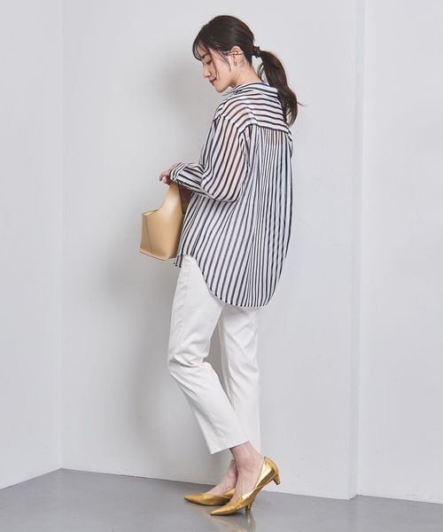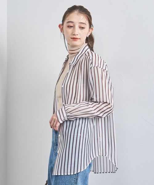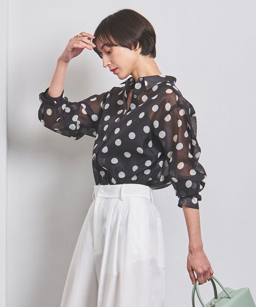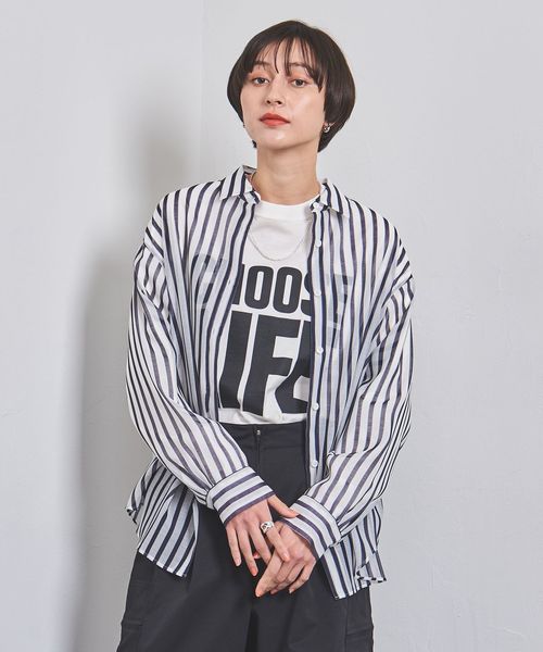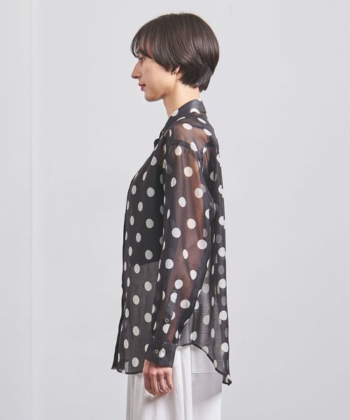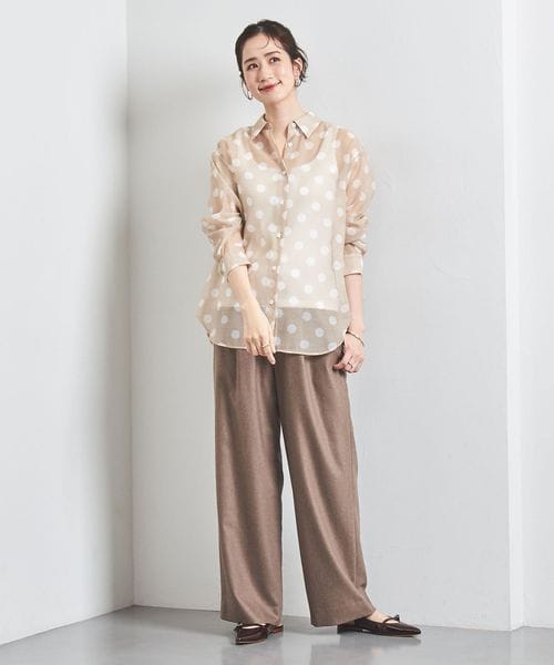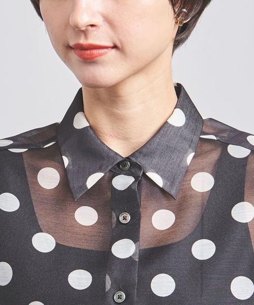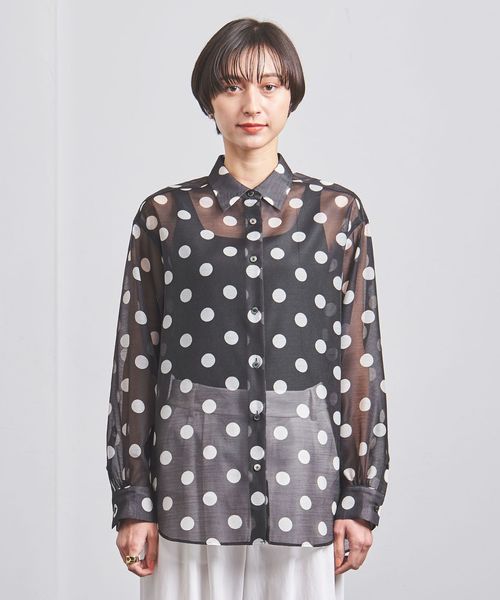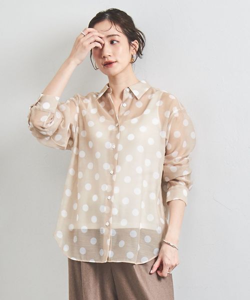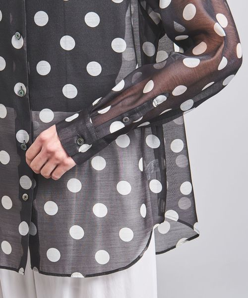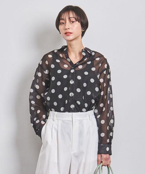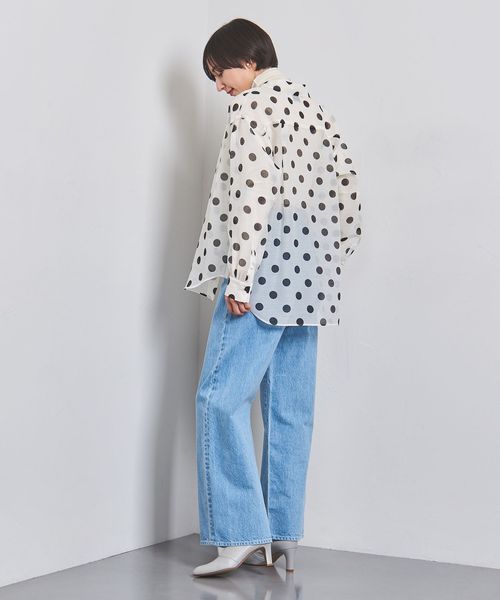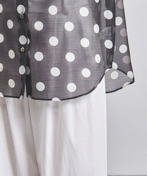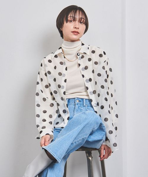 インナーや肌をほのかに透かす生地が、カジュアルな柄にエレガントな雰囲気をプラスしています。