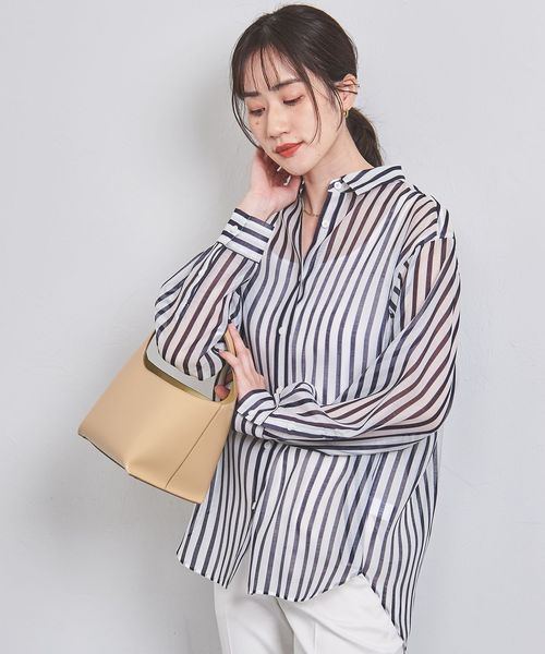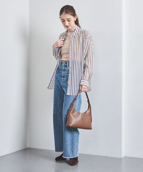 インナーの透け感を活かしてキャミソールやTシャツなどで楽しんだり、寒い時季にはタートルネックに重ねても素敵です。