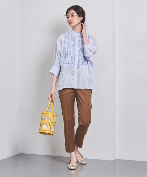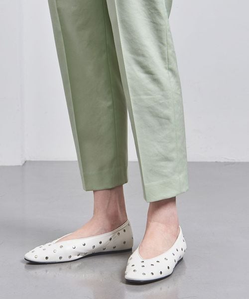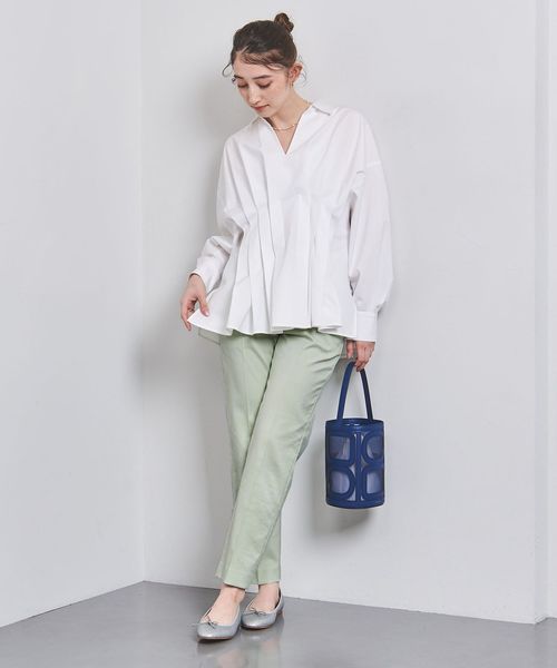 ヒールパンプスやフラットシューズなど、足元のアレンジが広がるやや短めの丈は、春夏シーズンらしく軽やかな印象です。