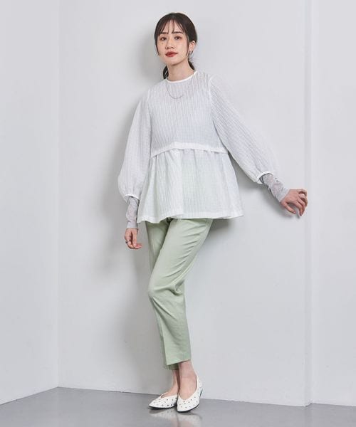 ペプラムシルエットやパフスリーブなど、ボリュームのあるデザイントップスにぴったり。