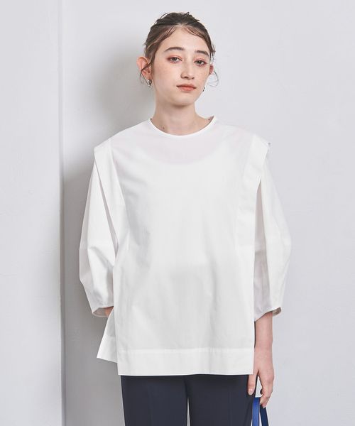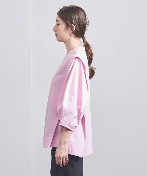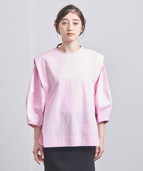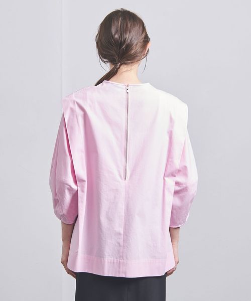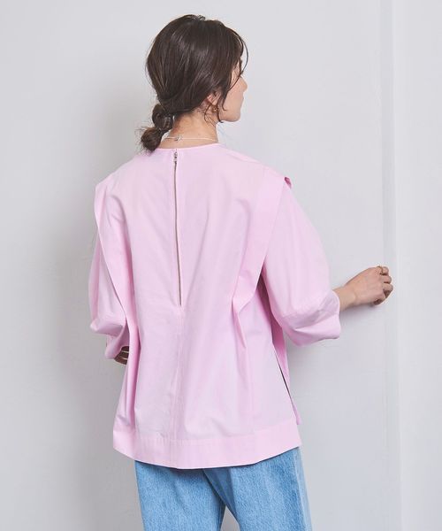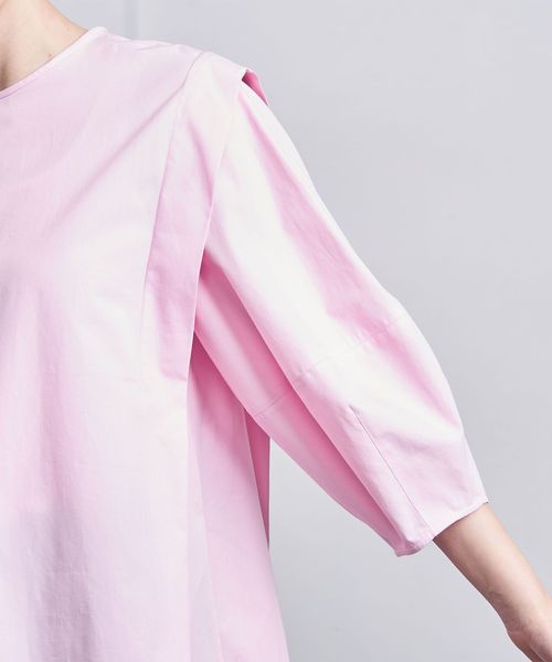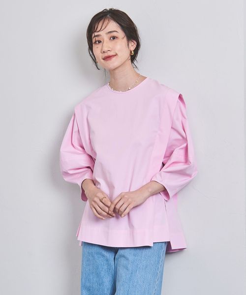 肩のタックが生み出すストレートラインと曲線的なスリーブデザインが目を引く、モードと女性らしさを併せ持った一枚。