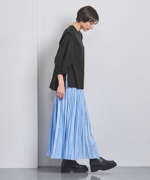 テーパードシルエットやワイドパンツのほか、ストレートラインのスカートとも好相性。