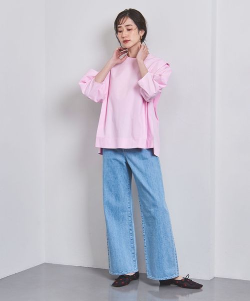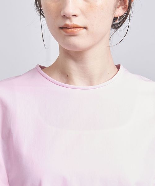 シンプルなクルーネックと八分袖で軽快な印象があり、アクセサリーが映えるように計算されたデザインです。