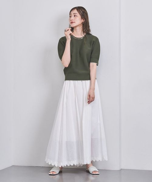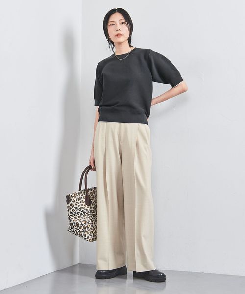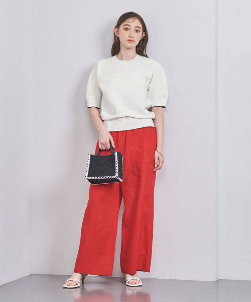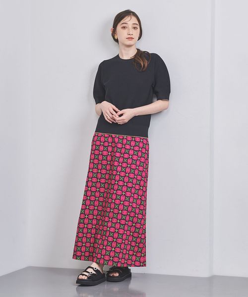 タフタ素材などボリュームのあるボトムにもすっきりと合わせられます。