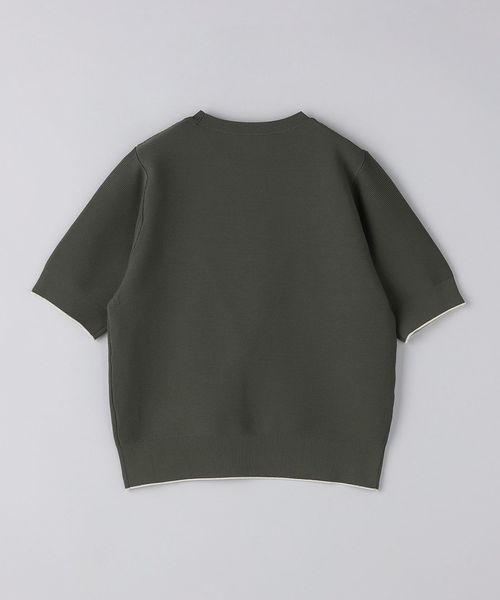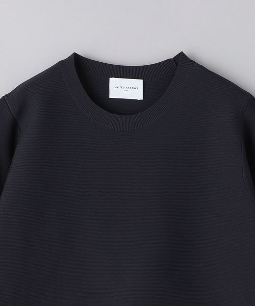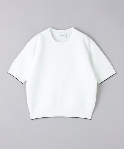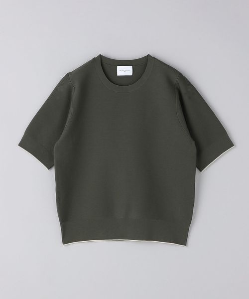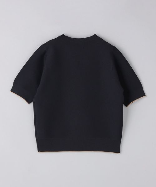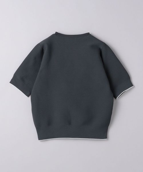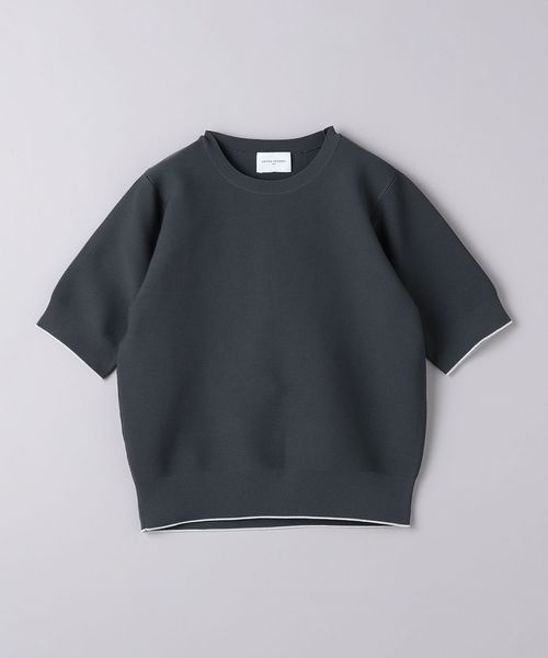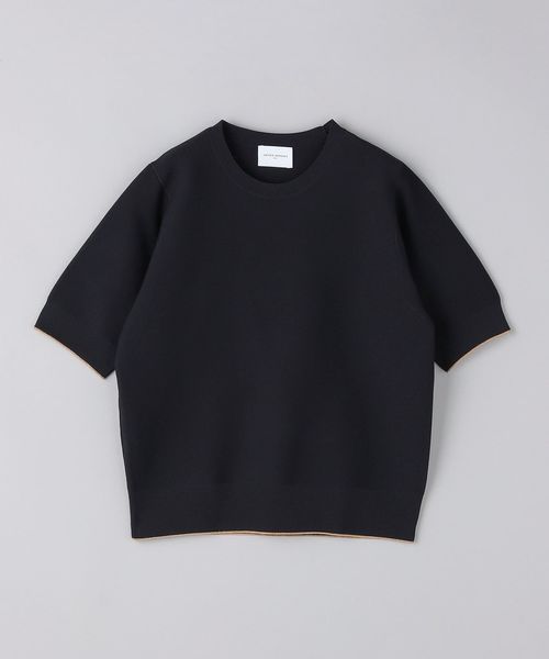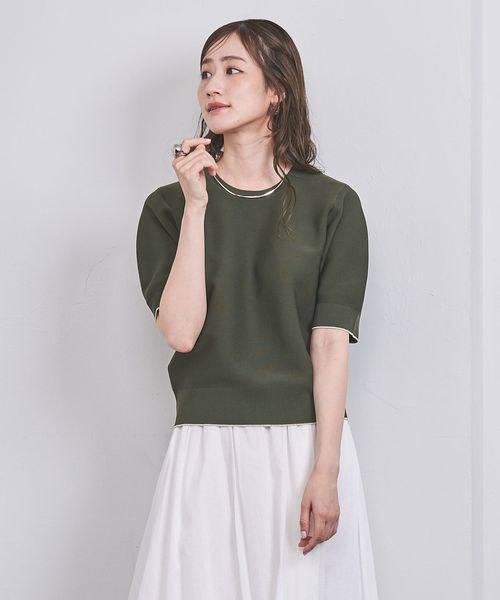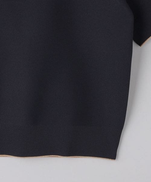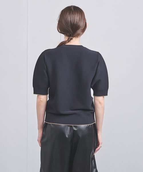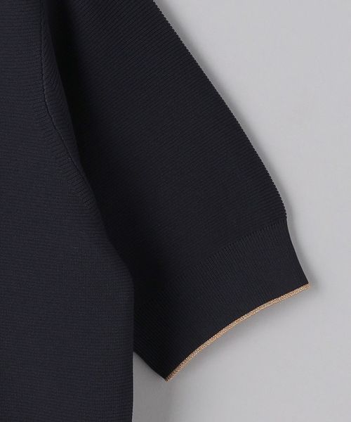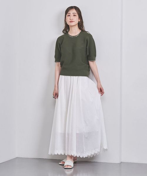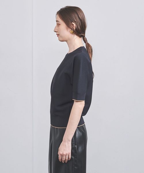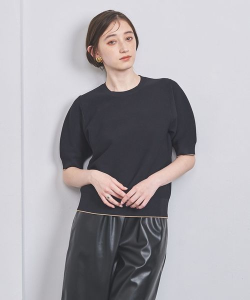 袖口と裾に控えめな光沢のラメ糸で極細のラインを入れ、アクセントにしています。