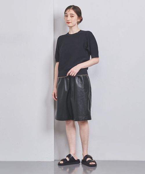 サテンやレザーライクなど、存在感のある質感のボトムにもおすすめです。