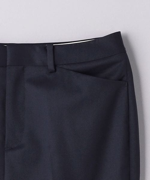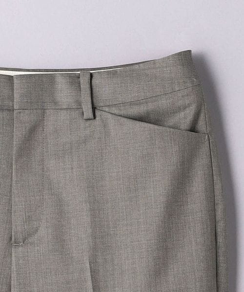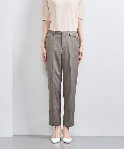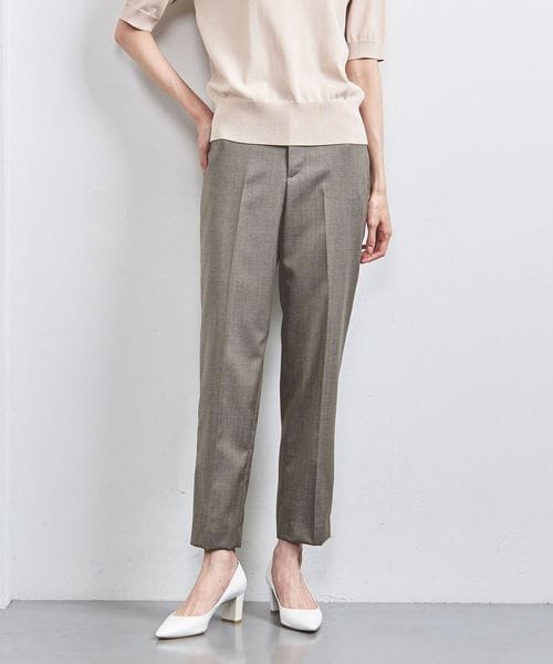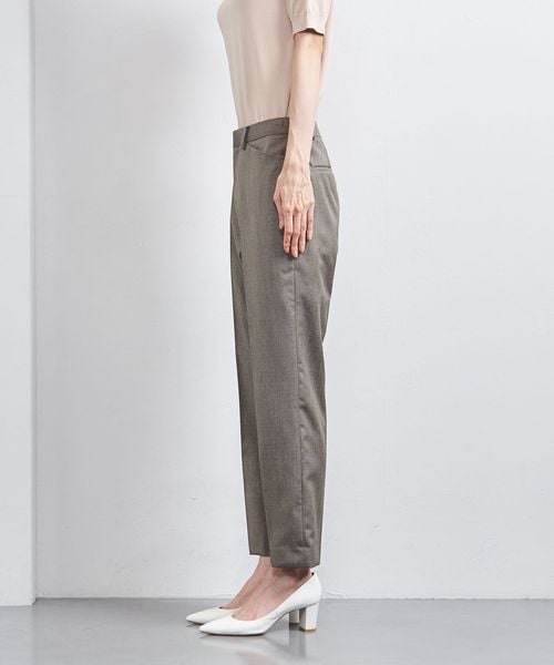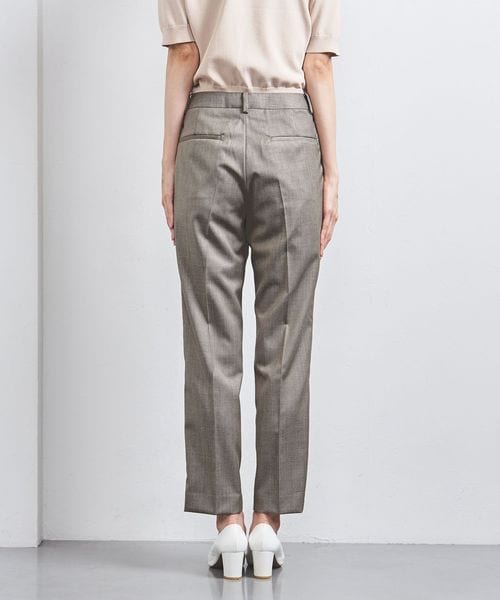 裾に向けて細身になるテーパードシルエットのパンツ。