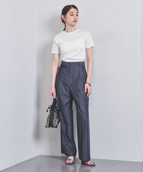 コンパクトなサイズ感のランダムリブTシャツ