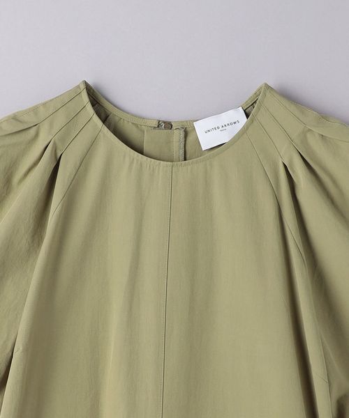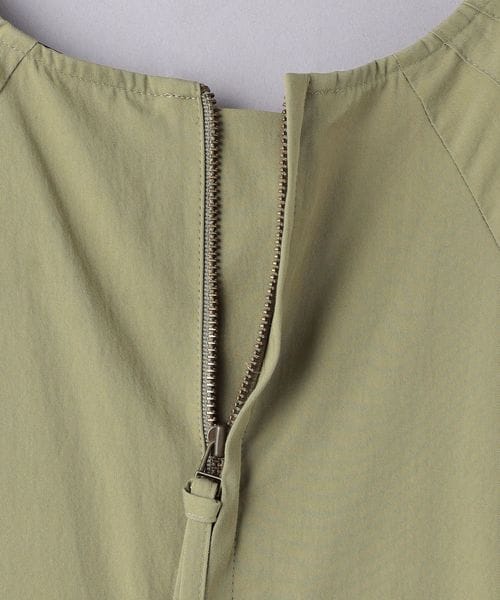 首元から袖に向かってほどこしたタックラインや、ファスナーの引き手に付いた細リボンもポイント。