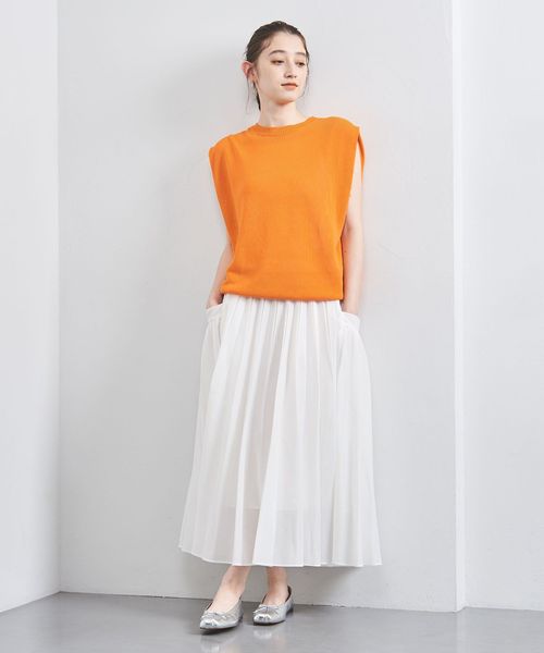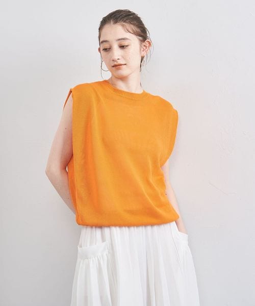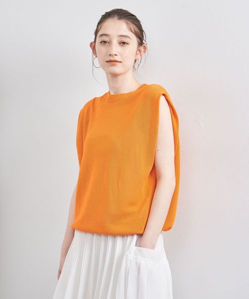 フレンチスリーブで気になる腕周りをすっきりと見せてくれるニット。