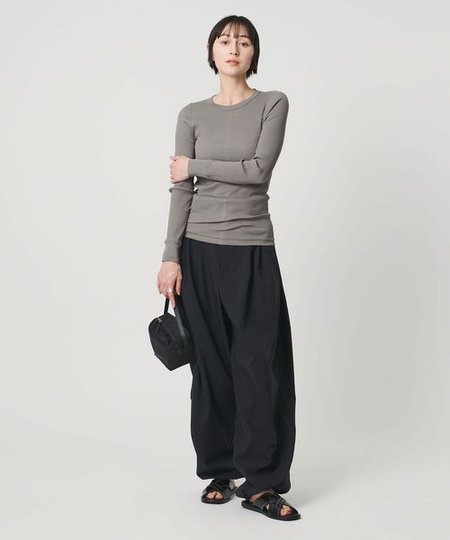 身体のラインに程よくフィットして、一枚着はもちろんベストのインナーやローゲージニットのインナーなどにおすすめです。
