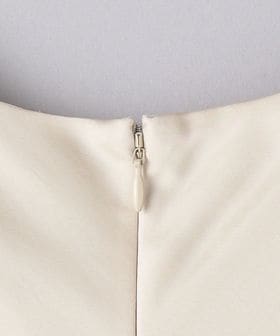 ラウンドネックから覗くデコルテとサテンの光沢が女性らしさを際立たせます。