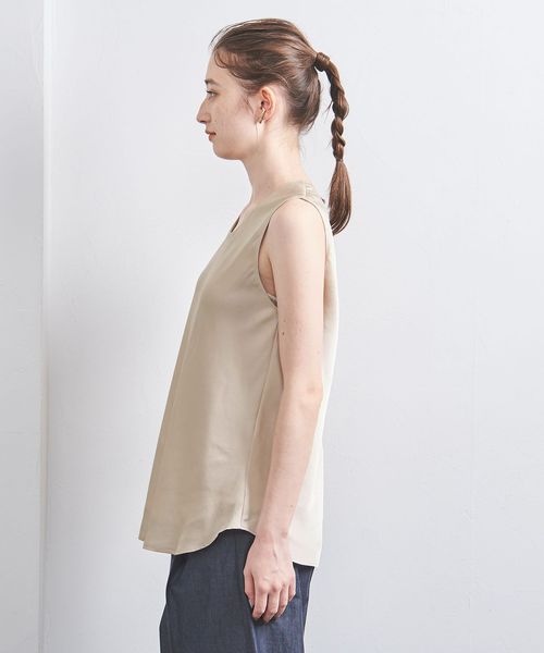 一枚着やインナーにも重宝するノースリーブサテンブラウス