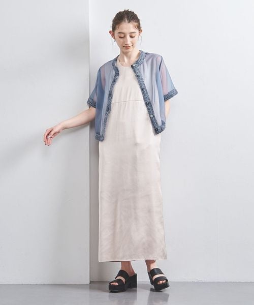身頃はハリ感がありながら適度な柔らかさのシアーオーガンジー素材で、マットな質感が上品です。