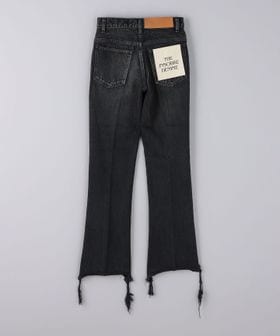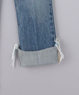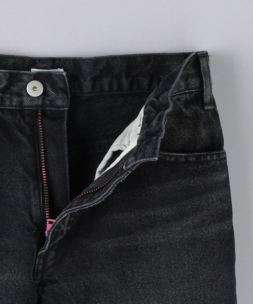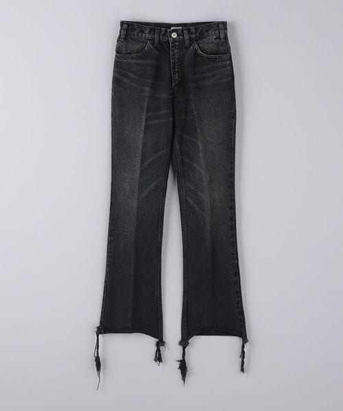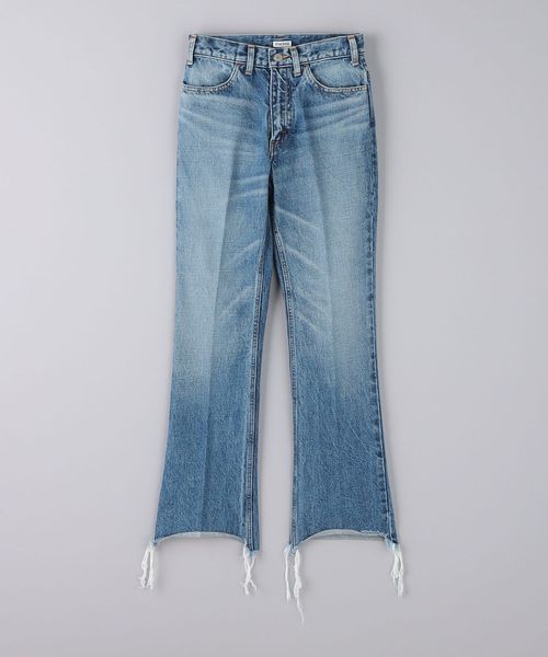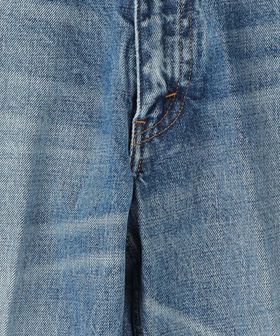 ジップフライ開閉のセミフレアータイプのデニムパンツ。