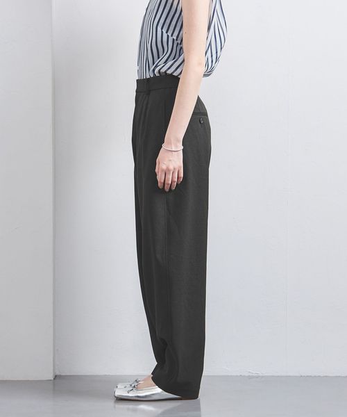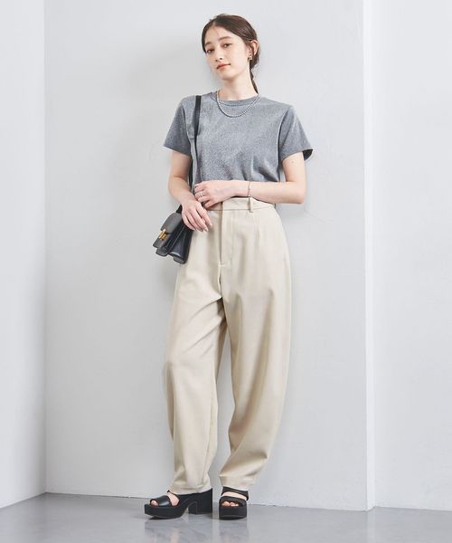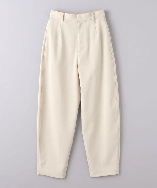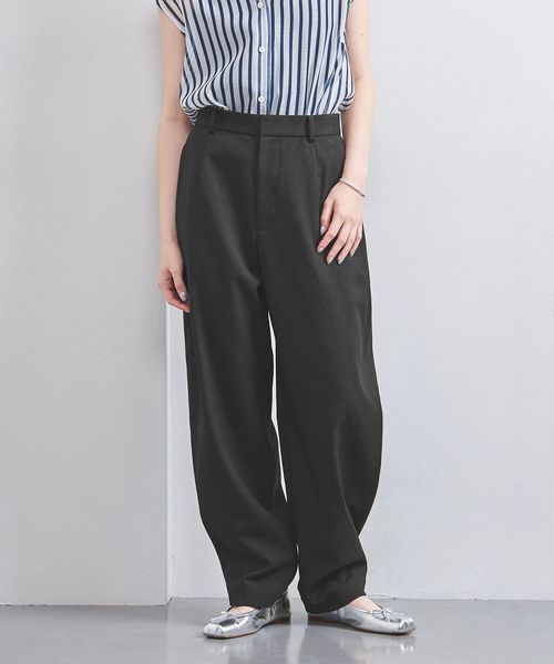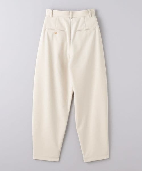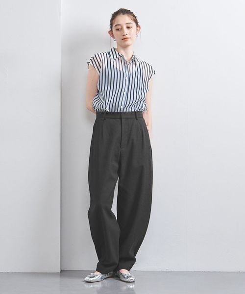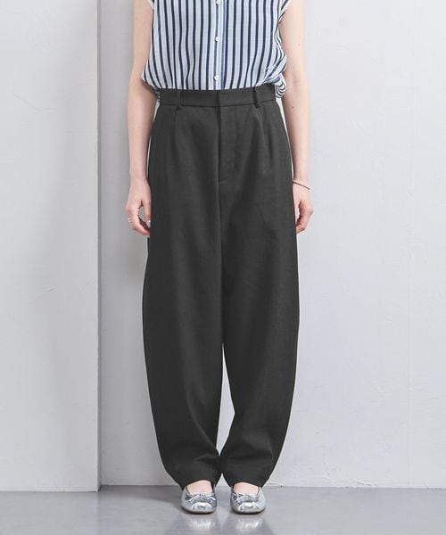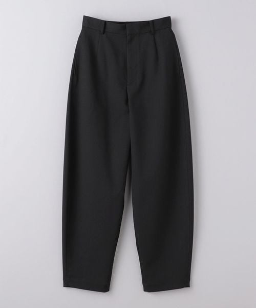 ややハイウエストで脇がカーブしたバレルシルエットのパンツ。