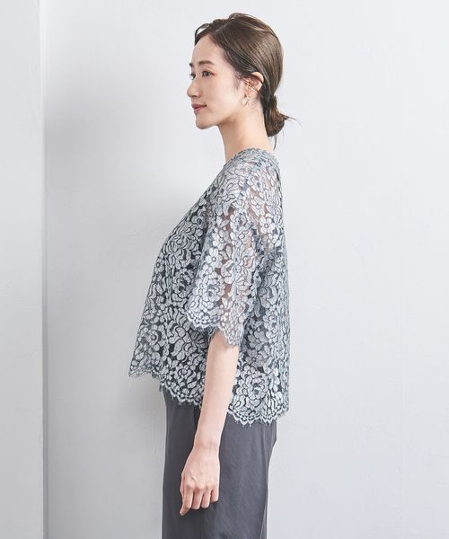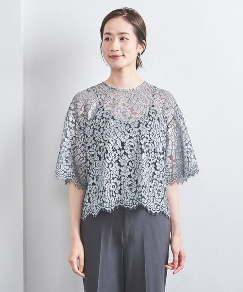 グリッターレースの上品な色とスカラップが美しいブラウス