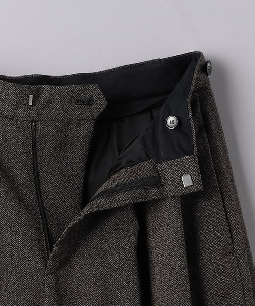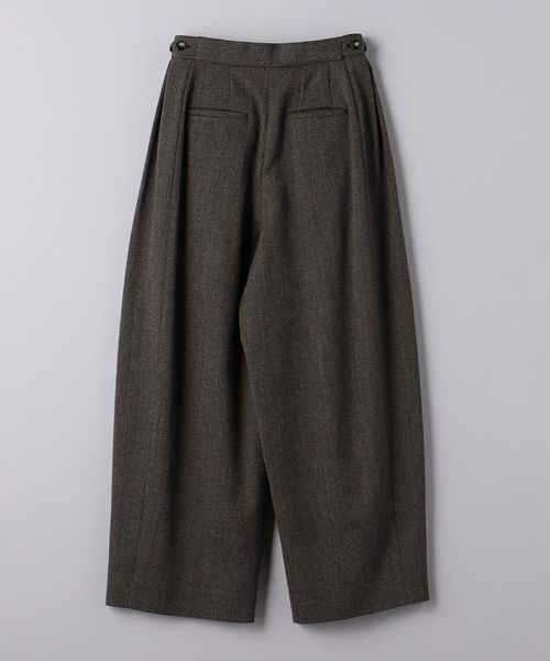 存在感のあるツィード素材を使用した大胆な太さのワイドパンツは、丸みを帯びたシルエットが特徴的。