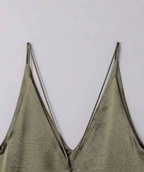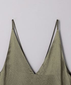 高級感のあるサテン素材のキャミソールドレスはインナー次第であらゆるコーディネートが可能です。