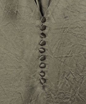 本体と対称的な細いストラップとセンターバックに配されたクルミボタンがポイントになっています。