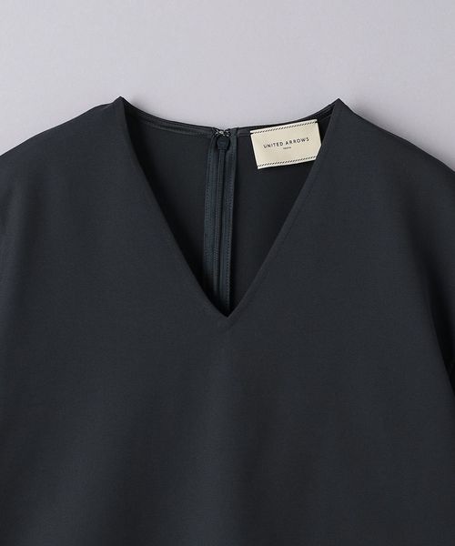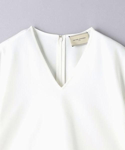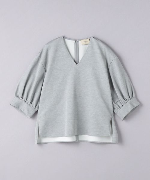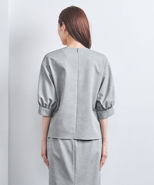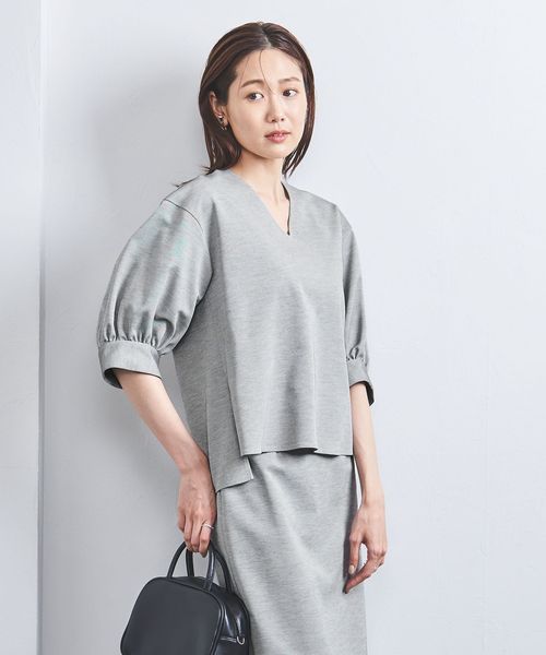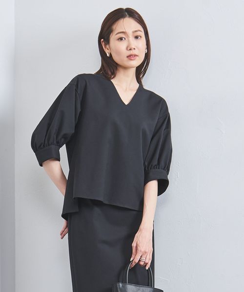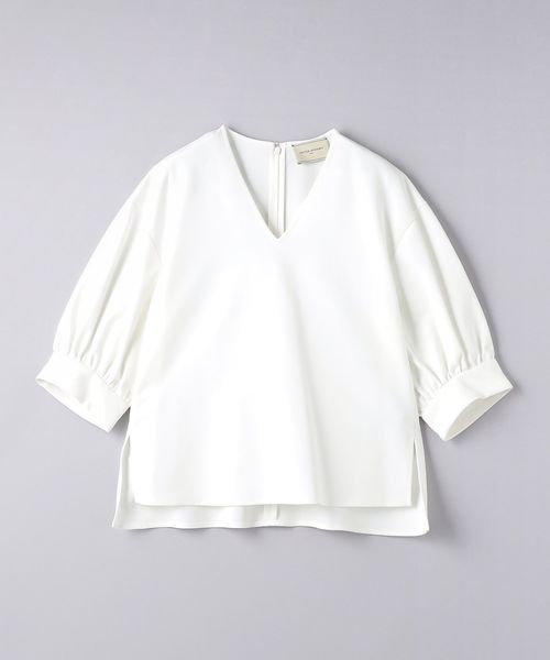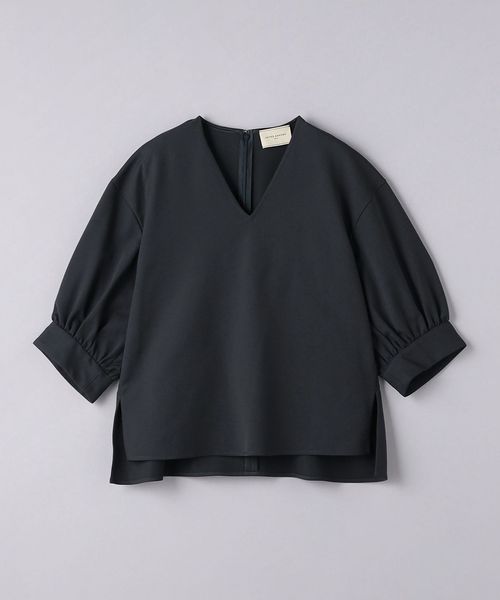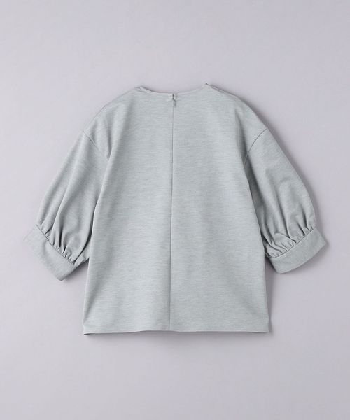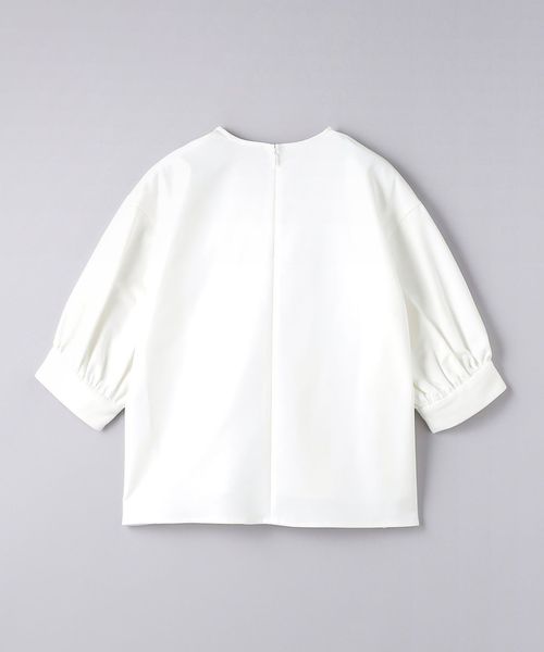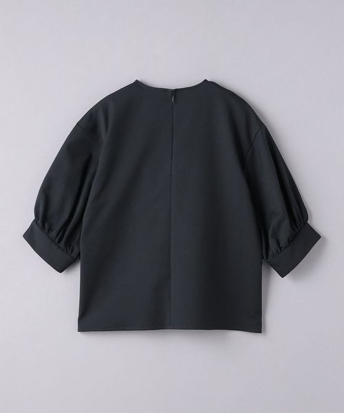 袖口に向かってボリュームのある五分袖のパフスリーブデザイン。