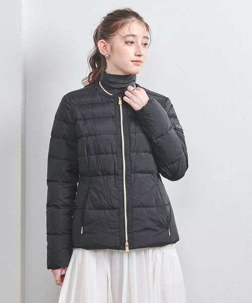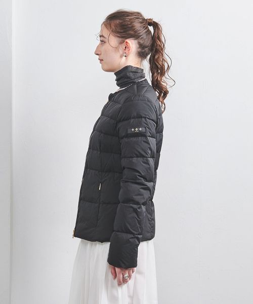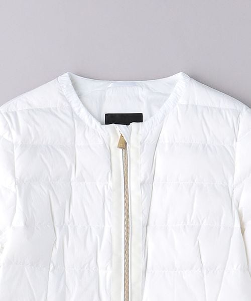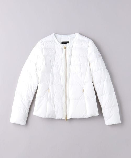 ジャケットライクなデザインでエレガントな雰囲気に仕上げるノーカラーダウン
