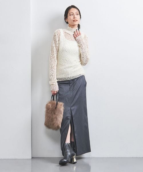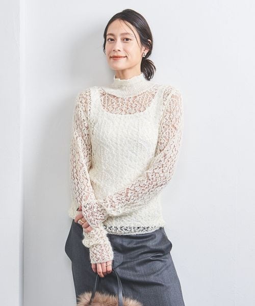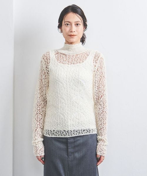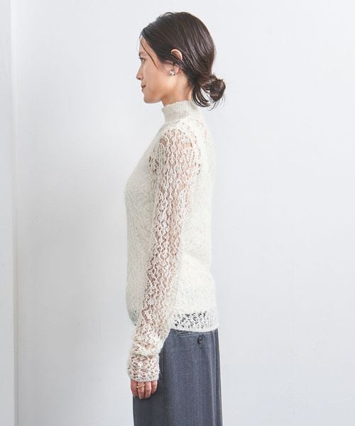 繊細なレースニットでほのかな大人の肌見せニット