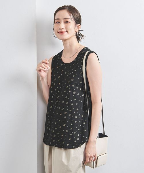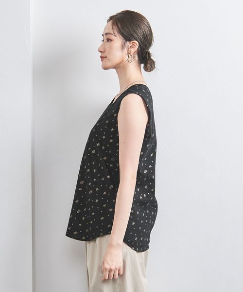 遊び心のある星柄を散りばめ、高級感のある色合いが魅力のノースリーブブラウス。
