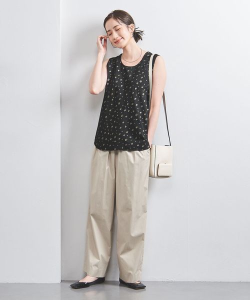 輝きのある星柄の生地を使用したノースリーブブラウス