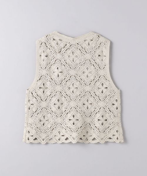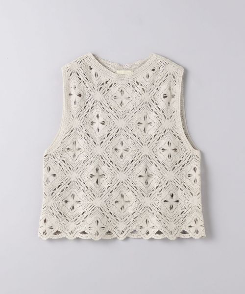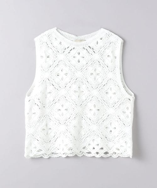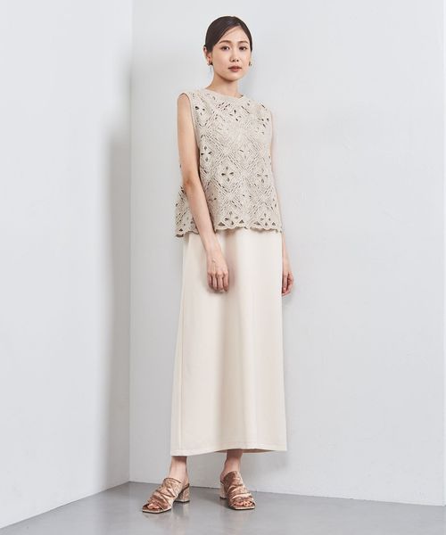 全面に施された刺繍が華やかで、肌を透かす涼しげな表情のノースリーブニット。