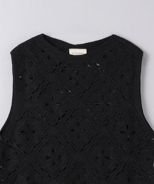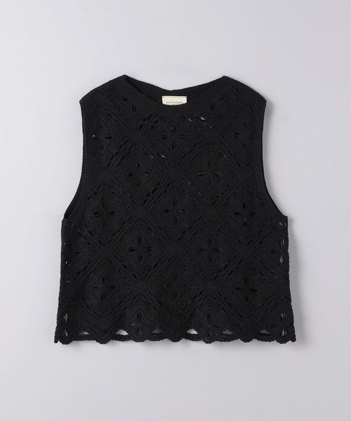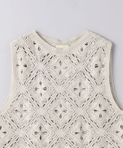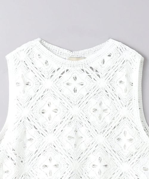 全面に施された機械刺繍のテクニックが光るノースリーブニット