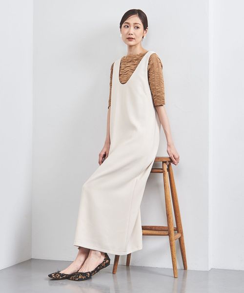 ややショート丈のコンパクトなサイズ感なので、ボリュームのあるギャザースカートやワイドパンツなどとの相性がよいです。