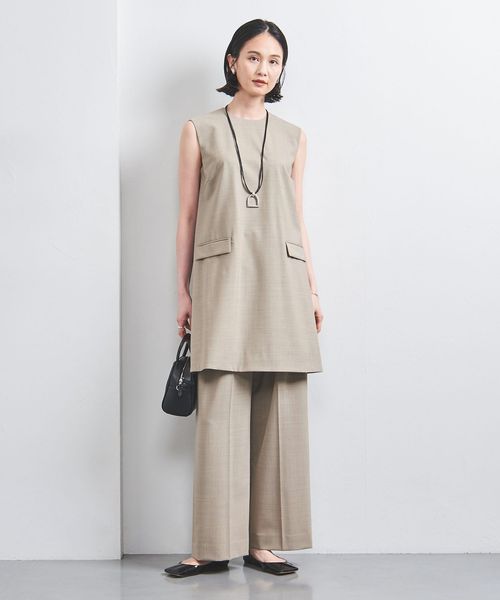 同シリーズのベストとのセットアップや、ピンタックシャツ、ドルマンスリーブシャツなどとのスタイリングがおすすめです。